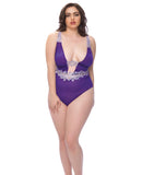 Mesh Plunge Teddy w/Applique Detail Grape/Lilac 2X