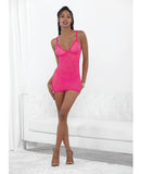 Neon Honeycomb Chemise w/Strappy Back & G-String Neon Pink LG