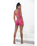 Neon Honeycomb Chemise w/Strappy Back & G-String Neon Pink SM