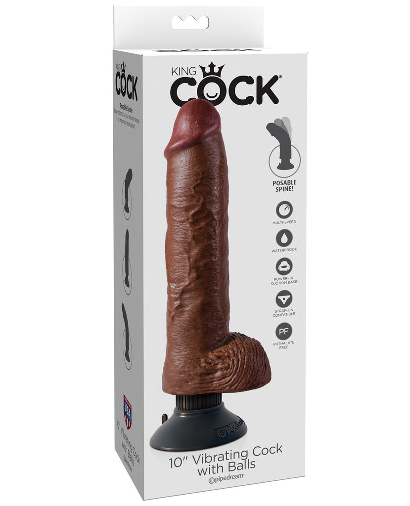King Cock 10" Vibrating Cock w/Balls - Brown