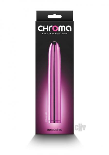 Constructed of premium ABS plastic, the classic 7” vibrator by Chroma is reimagined as a rechargeable wonder. Sleek and powerful, the intensity of Chroma is easily controlled and features multi-speed and functions. Available in a variety of colors, Chroma Vibes are water resistant and suitable with all lubricants. Product Dimensions: 6.73 x 1.1 x 1.1 (Inches) Package Dimensions: 10.28 x 3.19 x 1.61 (Inches) Insertable Dimensions: 6.5 x 1.1 (Inches) Product Material: ABS Battery Type: Rechargeable