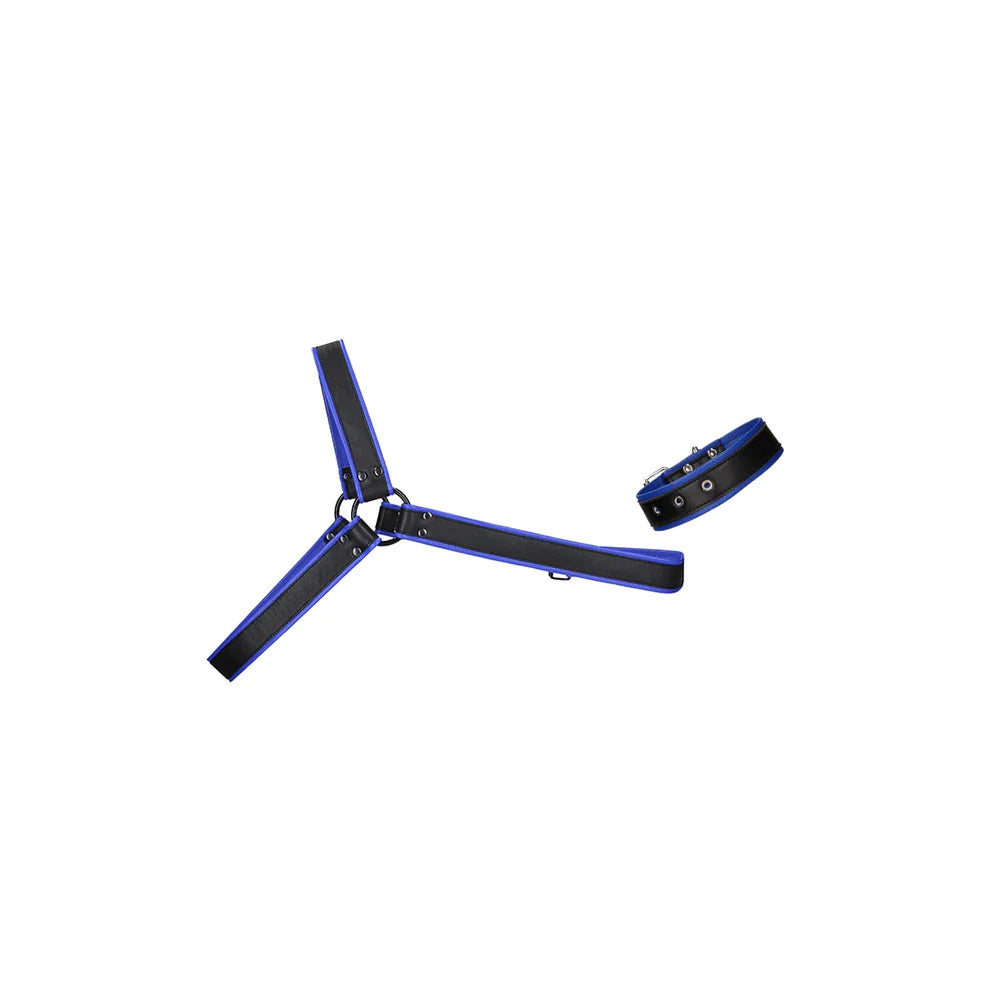 Strap yourself into this premium quality asymmetrical Y-shaped harness to enhance and maximize your masculine shape. This high-quality bonded leather harness will beg for attention the minute you slide it over your shoulders! The modern Y design means the harness can be used as a perfect fetish fashion statement or an indispensable addition to your BDSM collection. Wear it over your clothes or on naked skin the choice is yours! The adjustable harness closes with a sturdy buckle on the back and has a sizeable O-ring on the right chest side for the easy attachment of leash/lead ropes chains wrist cuffs or simply whatever your heart desires. The harness can be adjusted around the chest from 98 cm to 112 cm the shoulder strap is 43.5 cm. Colour Code: Black - BDSM | Red - Fisting | Blue - Anal Dimensions package 0.39 x 0.39 x 0.39Weight package 0.04 ozProduct weight 8.04 ozPhthalate free Yes