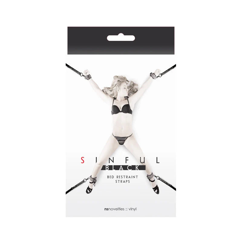 Sinful has been THE name in affordable playful kink in pink. Now, Sinful just made `sexy` a little bit sexier! NS Novelties is excited to introduce Sinful: Black. Everyone`s favorite collection is now available in a stunning midnight black finish while continuing to deliver the quality you expect. Black, nickel-free anodized hardware, aesthetically striking embossed vinyl, and lined in soft yet durable liquid-play friendly neoprene.
