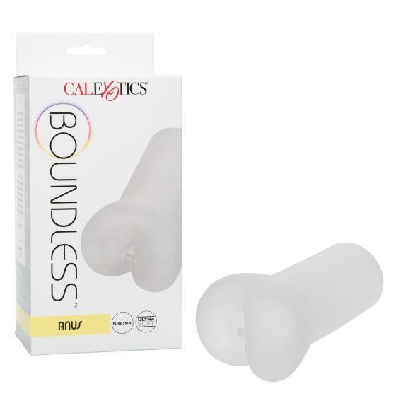 Boundless Anus Stroker Frost from California Exotic Novelties. There are no ifs, ands, or buts about it, the Boundless Anus is the gold standard when it comes to adult toys representing one of the world's most desirable assets. This close ended design allows for superior suction, giving you the real feel of a sexual partner that you have been craving. With life like Pure Skin material, you can use the Boundless Anus to put your sexual frustration behind you, satisfying every single desire you have. The soft, tight, and stretchy Thermoplastic Elastomers TPE material feels just like the real thing, and is hygienically superior and virtually maintenance free, with an easy cleaning with mild soap and water bringing it right back to new. For use, simply apply the lubricant of your choice and let your imagination and your fantasies, run wild. This 5.5 inches, multi-textured chamber will offer you endless satisfaction, and allows for a full range of motion during solo play or for use by a partner in a couples setting for an incredible sexual satisfaction. Features Phthalate free, Waterproof. 1 year warranty. Measurements 5.5 inches by 3 inches. Bulk weight 10.2 ounces. Package 11.5 ounces. Package 2.75 inches by 4 inches by 8.25 inches.