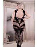 Sheer Cross Faded High Neck Crotchless Bodystocking Black QN