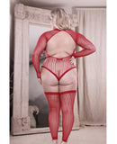 Sheer Infatuation Long Sleeve Teddy w/Attached Footless Stockings Red QN